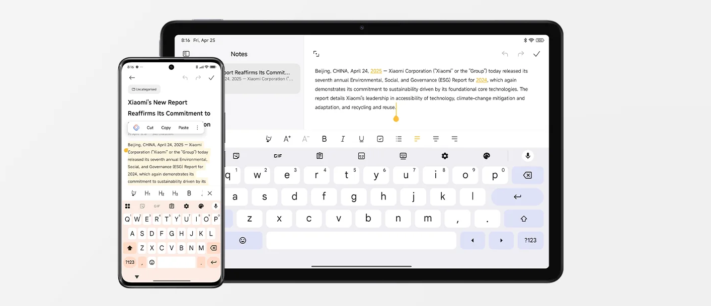 Помимо развлечений, планшет Redmi Pad 2 4G обеспечивает удобство решения рабочих задач с HyperOS 2, предоставляя улучшенный программный интерфейс. Синхронизация вызовов, сетевое объединение и общий буфер обмена через Wi-Fi и Bluetooth еще больше оптимизируют коннект со смартфонами. Принимайте входящие телефонные вызовы непосредственно на планшете и плавно переключайте голосовые вызовы между устройствами, а также свободно копируйте и вставляйте текст и изображения между устройствами так, как если бы он находились на одном гаджете. Это позволяет добиться более плавного и эффективного рабочего процесса с оперативным выполнением задач в течение дня.