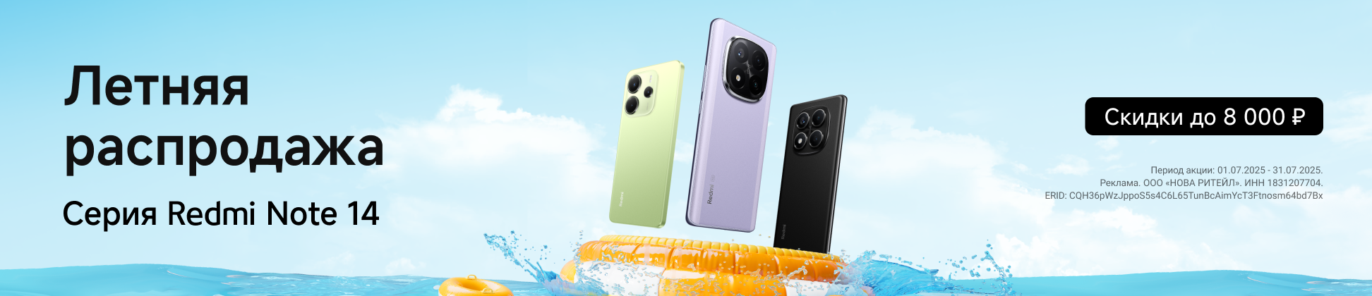 Встречайте летнюю распродажу серии Redmi Note 14. С 1 по 31 июля вы можете приобрести эти стильные и мощные смартфоны со скидкой до 8000 рублей. Это идеальное время, чтобы обновить свой гаджет и получить передовые технологии по специальной цене.